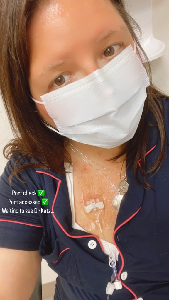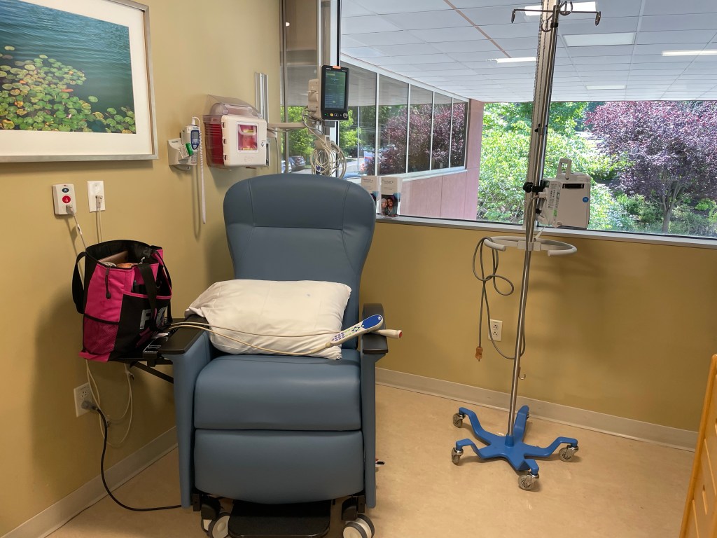 Today was a long day, very eventful. I met everyone at the infusion center, they were all super nice and caring. You saw the video about the awesome bag of treats! We got lunch and snacks and drinks if we needed. I talked to the nurses, the social worker, the dietician and I saw Dr Katz. Time went by quickly and we were home by 3pm. I took a nice nap and have felt pretty much ok all day. A little achy but overall good. I’m happy to have the port, that made things so much easier. Lidocaine cream an hour before and I didn’t even feel it. They took blood, hooked me up to all the meds. So easy.