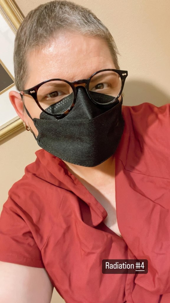 I started radiation last Monday. I only did 3 treatments because of the holiday so today was number 5. Radiation is mostly fine, besides having to be there at 8:30am every day. I don’t feel anything while it’s happening and I’m in and out in 20-25 mins. So far I don’t have any redness or skin irritation but it’s only been 5 treatments.